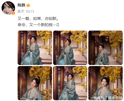 3月9日,陈数迎来 49 岁生日,当日她在社交平台晒出一组国风写真,配文“又一载,如常,亦如新。幸会,又一个新的我”,温柔又有力量的文字与写真意境完美契合,瞬间刷屏全网。镜头下的她身着华美传统服饰,手持摇扇缓步而立,眉眼间满是温婉端庄,活脱脱一幅“古代当家主母”的雅致画卷,岁月不仅未在她身上留下痕迹,反而沉淀出独一份的沉稳与大气。
